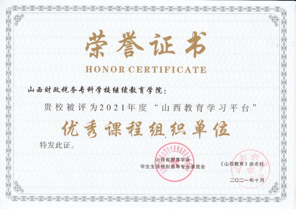近日,bat365继续教育学院被评为2021年度“山西教育学习平台”优秀课程组织单位。