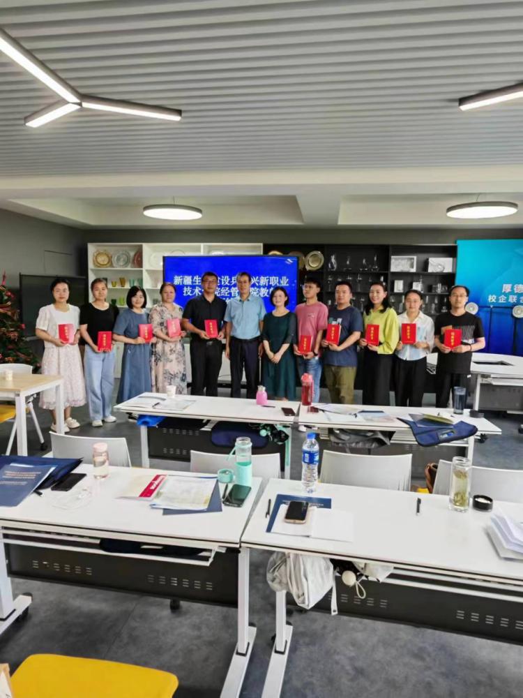 培训结束后,党委委员、副校长冯东元为参加培训的10名教师颁发了结业证书,同时希望参训教师能将培训研修成果带到自己的工作岗位上,做一个学习型、创新型、研究型的高校教师。参训教师们纷纷表示,通过本次培训学习,可以循着教学名师的脚步,拓宽职业发展渠道,探索教育教学领域新模式,为打造新疆生产建设兵团兴新职业技术学院高水平双师型队伍提供有力支撑。