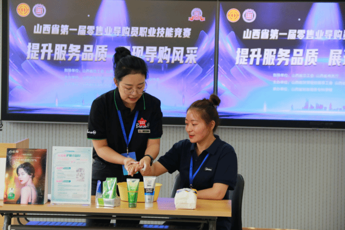本项赛事自6月18日发布以来,全省共有购物中心、百货店、超市、专业店、专卖店和便利店等40余家零售企业共100余名门店导购员踊跃报名参赛。数字商务学院梁彩花和杨文茹两位教师就导购员职业技能和综合素养为主题对初赛选手进行了系统化专业培训。经过资格审查和初赛选拔,最终45名选手进入了决赛环节。决赛分为“理论知识考试”和“实际操作考核”两个阶段,其中“理论知识考试”采取集中闭卷机考方式进行,“实际操作考核”为两轮赛制,分别采取卖场环境模拟、线上直播模拟、现场技能展示等方式进行。由bat365专家及兄弟院校专家和企业专家组成的裁判组,公平、公正、公开地评选出了山西省第一届零售业导购员一、二、三等奖以及“十佳金牌店长”、“十佳银牌店长”和“优秀导购员”技能人才荣誉称号。