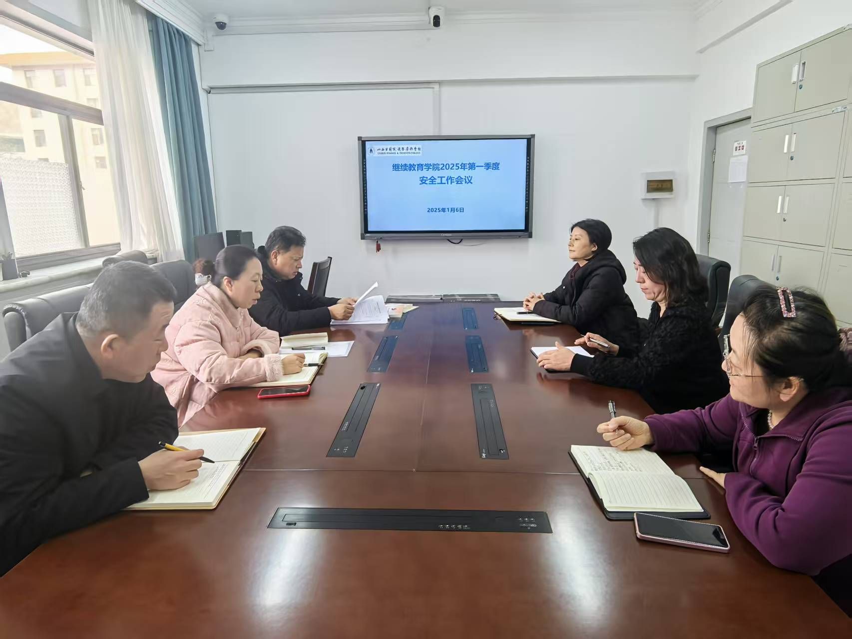 1月6日,继续教育学院在办公楼109会议室召开2025年第一季度安全工作会议。学院党总支书记曾春红主持会议,全体教职工参加了会议。
