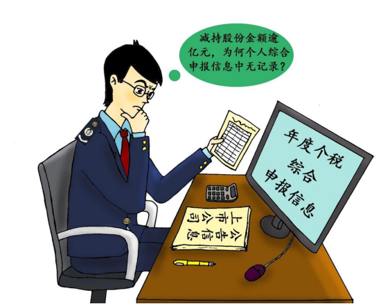 不久前,肇庆市税务人员从巨潮资讯网、东方财富网等多家行业网站中采集公告信息数据实施风险分析。税务人员发现,本地上市企业F公司大股东吴某近期分批在外地证券公司减持其持有的解禁限售股,总金额逾亿元。但比对吴某减持年度在肇庆市税务机关的年度个税综合收入申报信息,却发现吴某并未在“财产转让所得”一栏中申报该项股份转让事项。