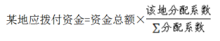 其中:某地分配系数=该地需求因素×(该地财力因素×25%+该地绩效因素×40%+该地政策等因素×35%)。”