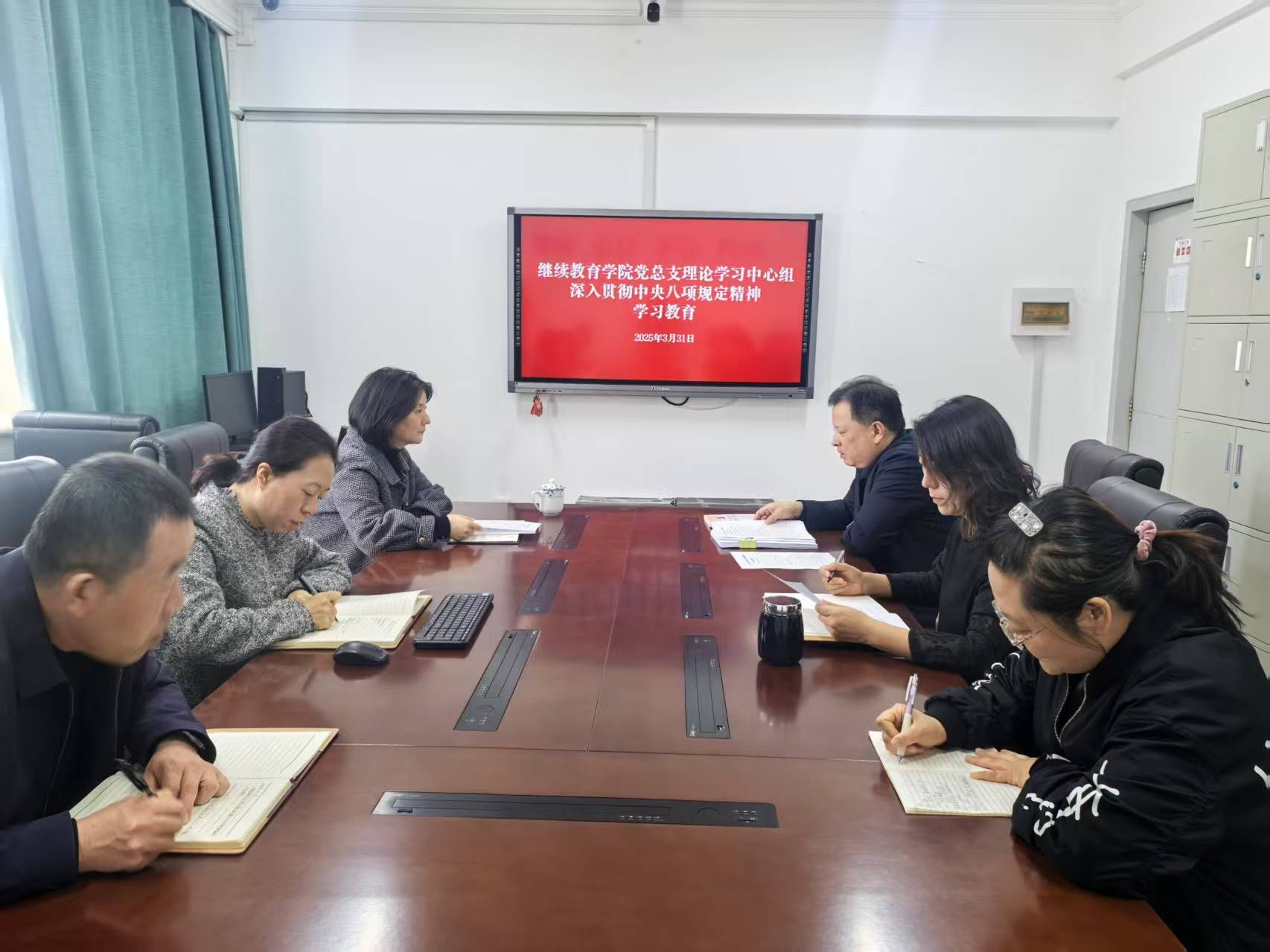 3月31日,继续教育学院党总支理论学习中心组在办公楼109室开展深入贯彻中央八项规定精神学习教育(扩大)学习会。学院党政班子成员及全体党员参加了会议,党总支书记曾春红主持会议。