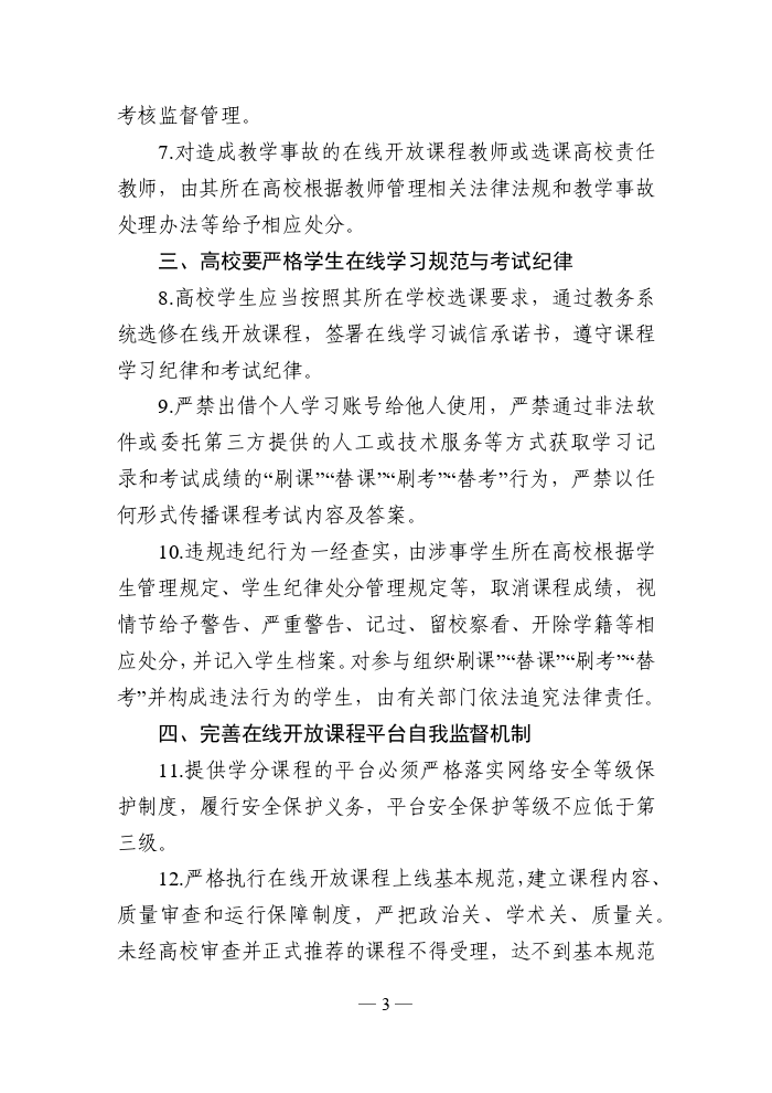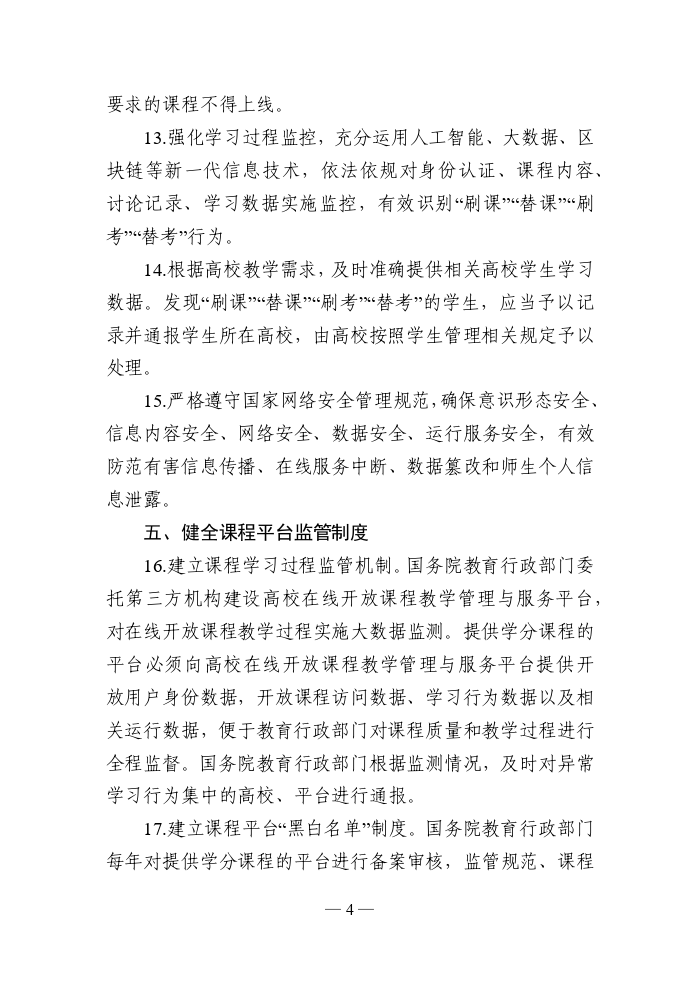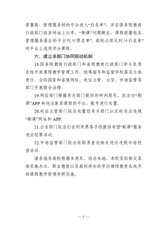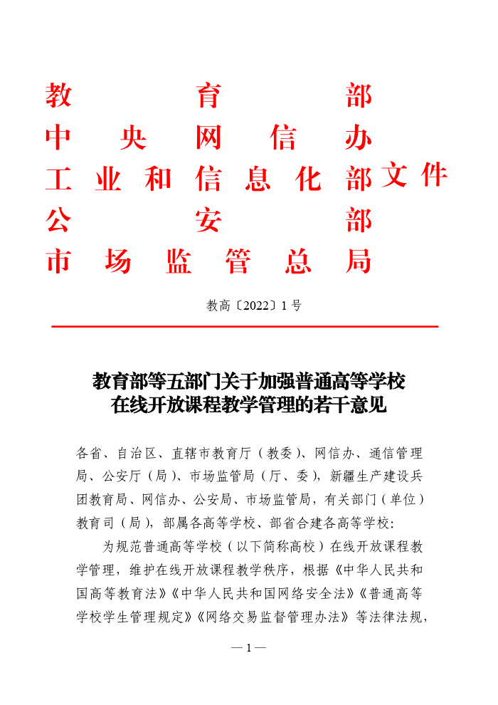 教育部等五部门关于加强普通高等学校在线开放课程教学管理的若干意见