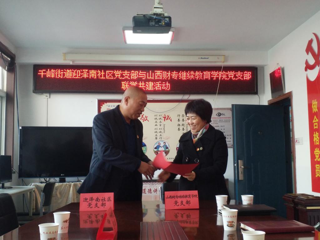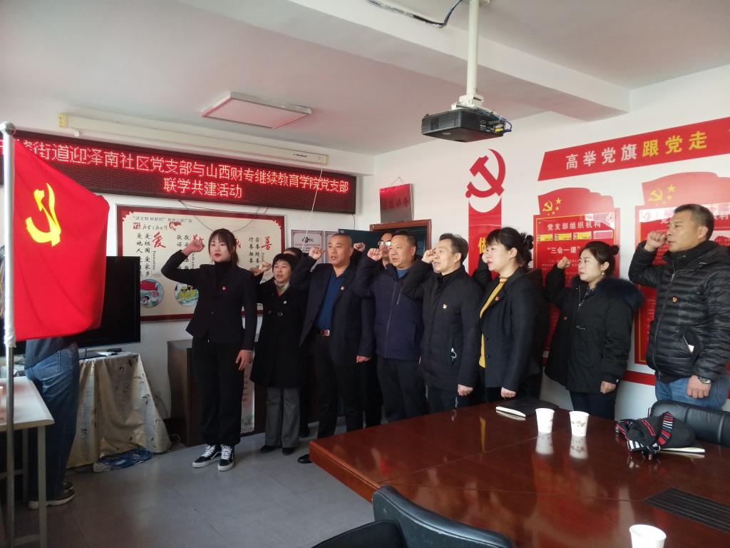 为了贯彻落实十九届四中全会“构建服务全民终身学习的教育体系”精神,服务bat365“双高”建设,拓展bat365社会服务领域,11月27日上午,bat365继续教育学院党支部全体党员与迎泽南社区党支部全体党员举办“支部联学 党建共建”主题党日活动。