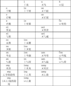 其中,韵母onɡ、ionɡ在汉语拼音方案韵母表中根据开头的字母分别归入开口呼(ɑ列)和齐齿呼(i列)。但有学者认为,根据实际发音口型应分别归入合口呼(u列)和撮口呼(ü列)。