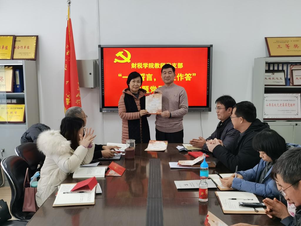 为扎实推进“全国党建工作样板支部”培育创建,巩固深化“不忘初心、牢记使命”主题教育成果,充分发挥党支部的战斗堡垒作用和党员的先锋模范作用,12月15日下午,我院教师党支部在学院“党员之家”活动室组织开展了“一句誓言,一生作答”主题党日活动。