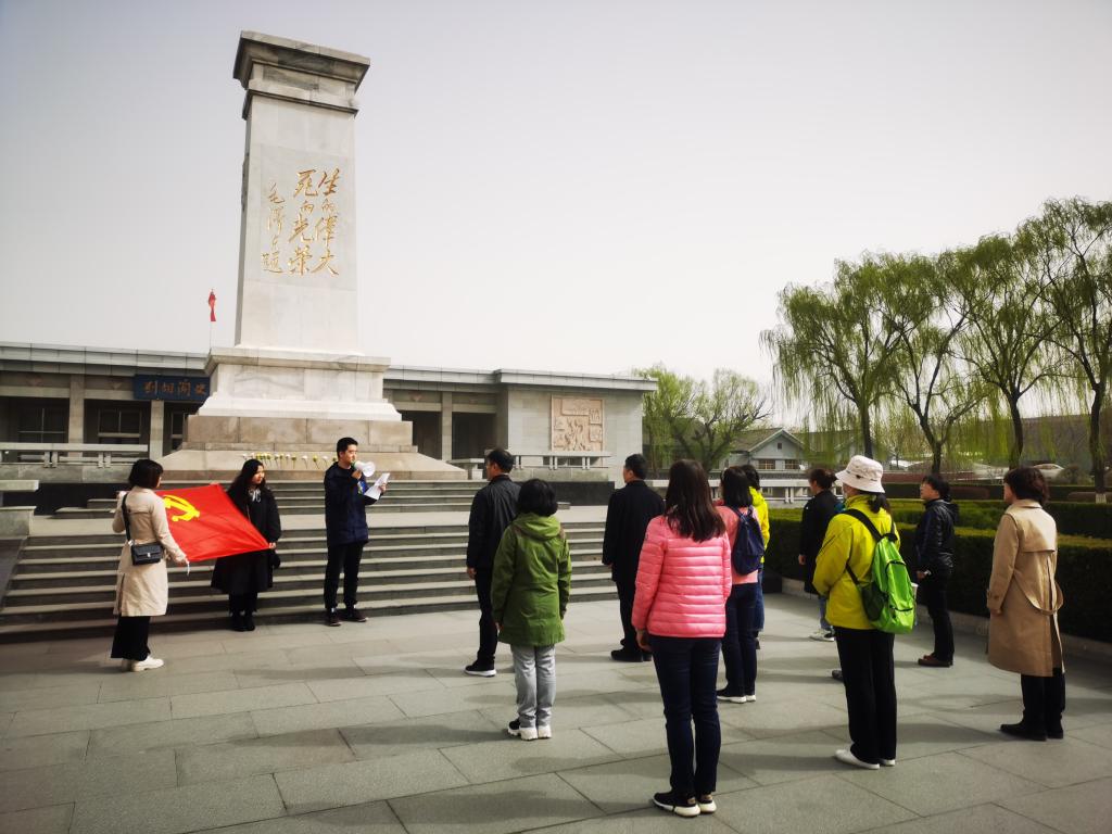 在烈士纪念碑前,全体教工党员默哀肃立、敬献花篮。财政系教师党支部宣传委员李越在党旗下围绕“刘胡兰精神”声情并茂进行了宣讲。