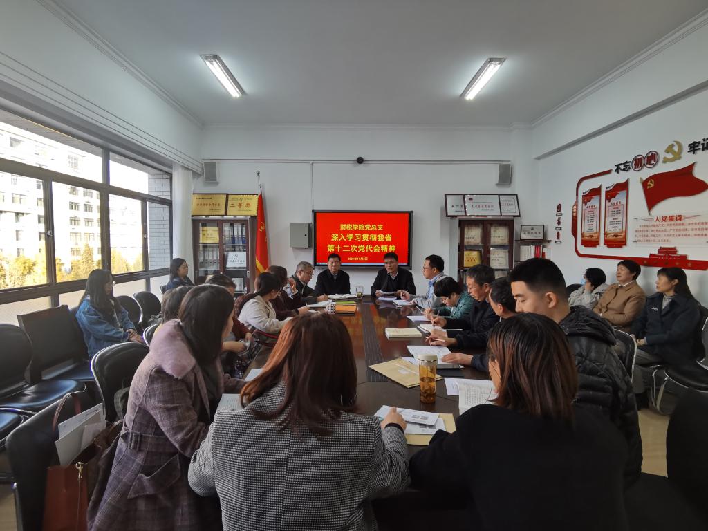 11月2日下午,我院党总支组织全体教职工在学院会议室集中学习解读我省第十二次党代会精神,进一步引导广大教职工准确把握省党代会提出的总体思路、工作目标、重大举措,进一步凝聚干事创业的精气神,为全方位推动学校各项事业高质量发展作出新的贡献。