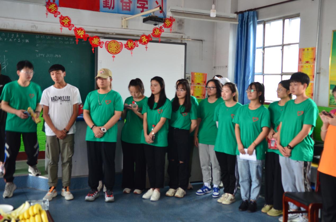 活动中,实践队代表学校向学校捐赠了篮球、足球、铅笔、作业本等体育和学习用品,向当地小学生送上诚挚地祝福,传递了爱心。之后,开展了支教互动活动,队员们运用自己的专业知识通过与不同年龄段学生的交流互动,体会到了孩子们学习的乐趣。队员赵乐作为支教一员,以“一根细链条可以拴住一头大象”来告诫同学们要努力学习,才能让习惯改变命运,成就未来;在互动游戏中,孩子们活泼可爱,向队员们表演了五步拳,让队员们感受到了乡村小学课间文化的丰富多彩。