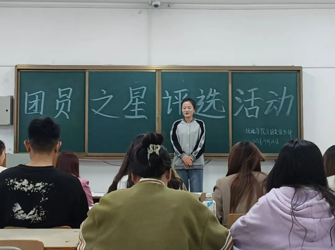 在评选环节,首先各位候选人按照评选标准和有关要求进行自我介绍,随后评委们对候选人进行党、团相关理论知识的提问,紧接着现场答辩环节使评选活动进入了高潮。经过评委的投票,最终选出两名“团员之星”:2021级大数据与财务管理一班 赵林菲和2022级资产评估与管理班 李家畅。