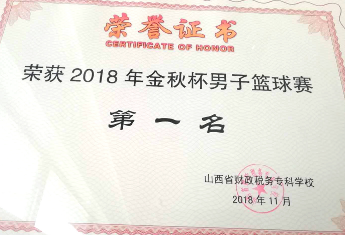 学生男篮荣获2018年金秋杯男子篮球赛第一名