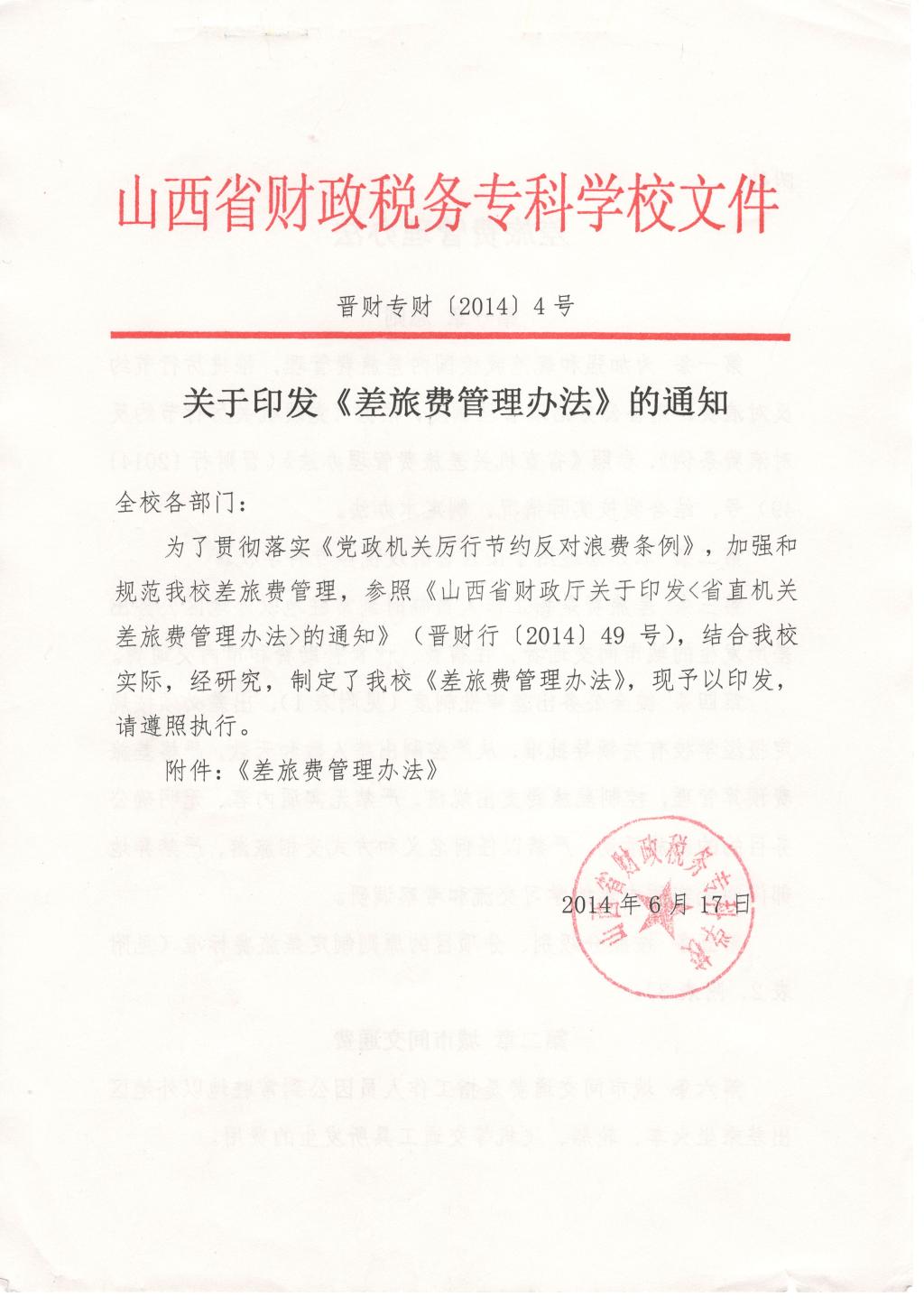 关于印发《差旅费管理办法》的通知