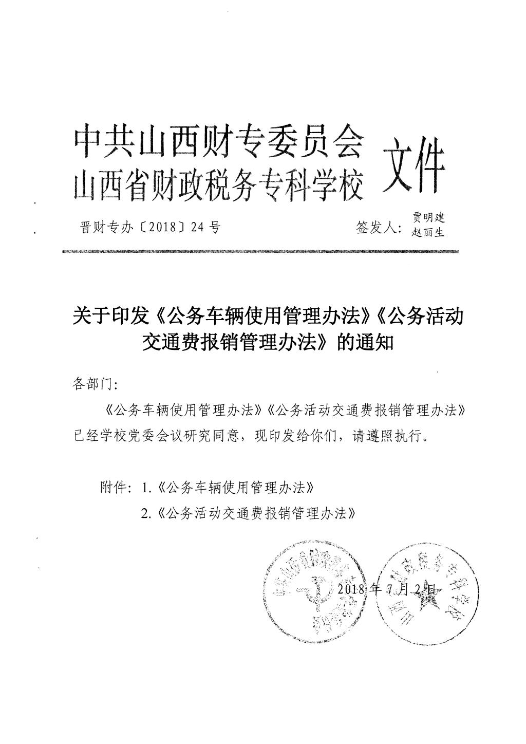 关于印发《公务车辆使用管理办法》《公务活动交通费报销管理办法》的通知