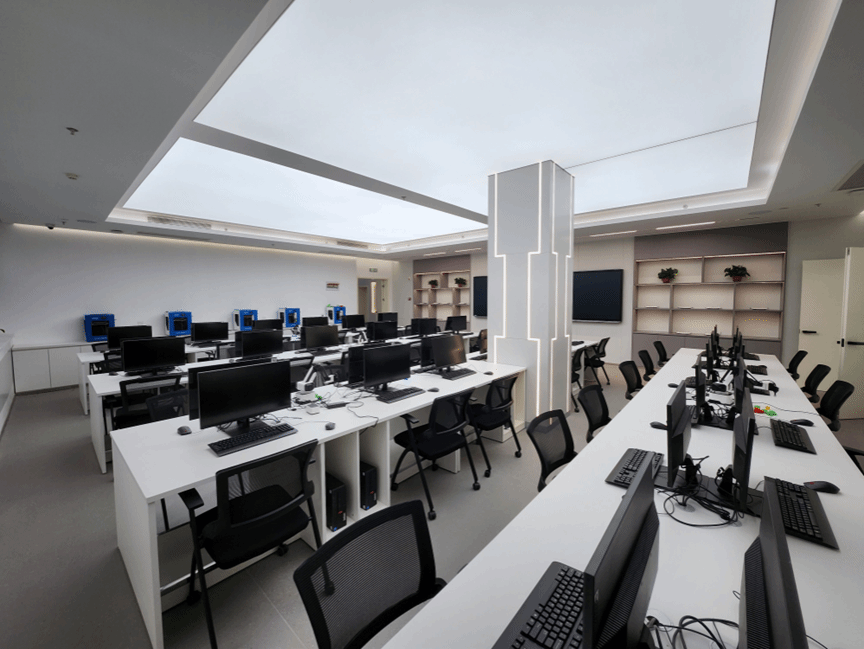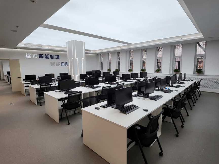 智能应用实训室: 智能应用实训室配备机械臂、智能机器人等多种人工智能相关实训设备,能够满足视觉识别、深度学习、人工智能等实训要求。