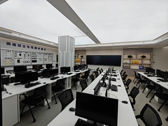 网络传输实训室: 网络传输实训室配备多组网络布线系统设备和无线设备,能够满足网络技术基础、网络综合布线、无线网络技术等实训要求。