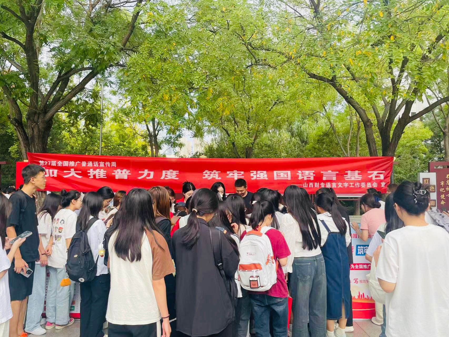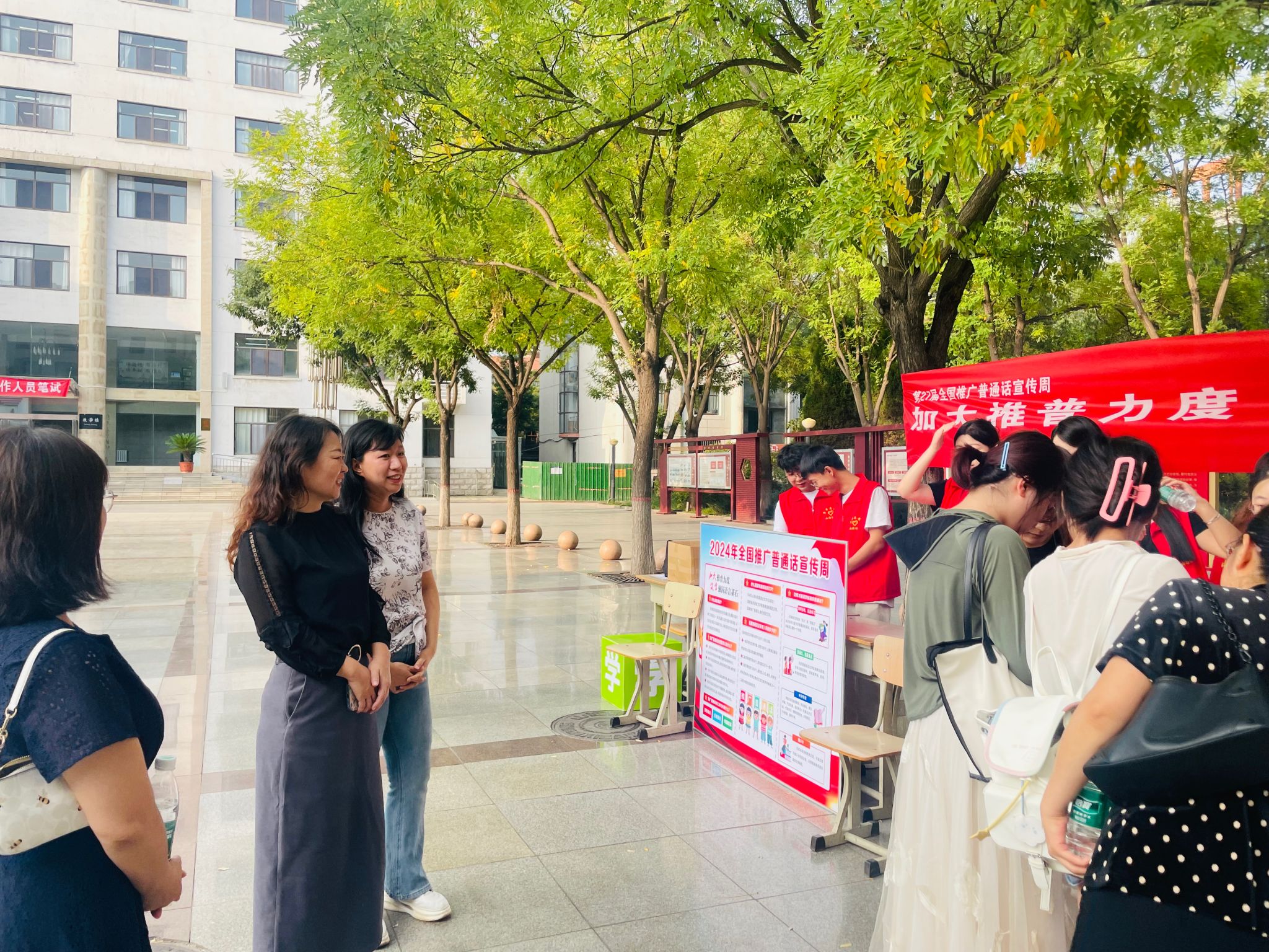 为深入贯彻落实习近平总书记关于语言文字的重要指示批示精神,扎实做好国家通用语言文字推广普及工作,根据《山西省教育厅等九部门关于在全省开展第27届全国推广普通话宣传周活动的通知》(晋教语﹝2024﹞1号)等文件要求,9月18日,bat365语言文字工作委员会在青年广场组织开展第27届全国普通话推广宣传周活动。校党委委员、副校长郭艳萍参加了本次活动。