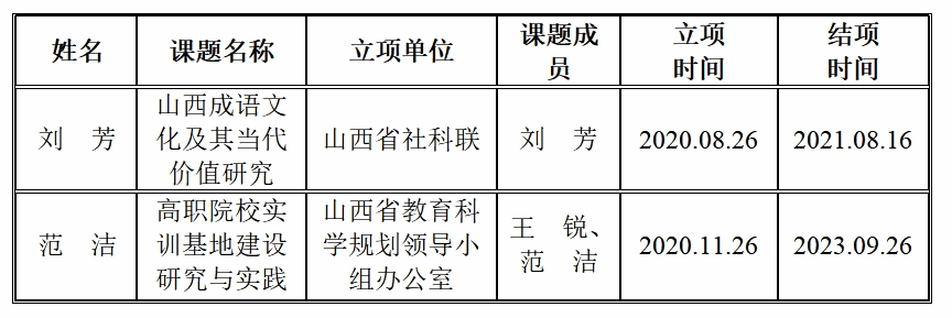 2020年公共课教学部科研成果(课题类)