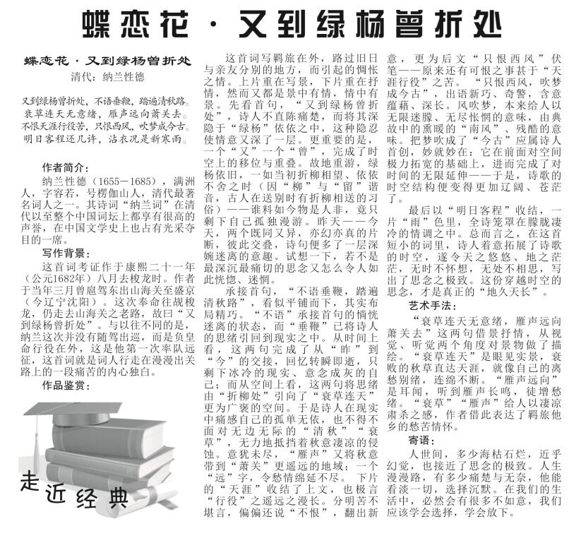 【2017年第 8 期】《蝶恋花•又到绿杨曾折处》