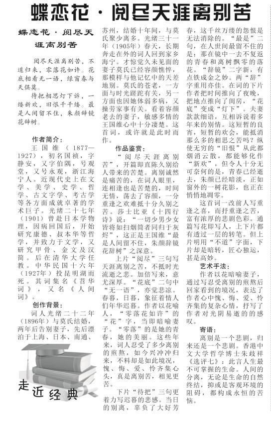 【2017年第14期】《蝶恋花•阅尽天涯离别苦》