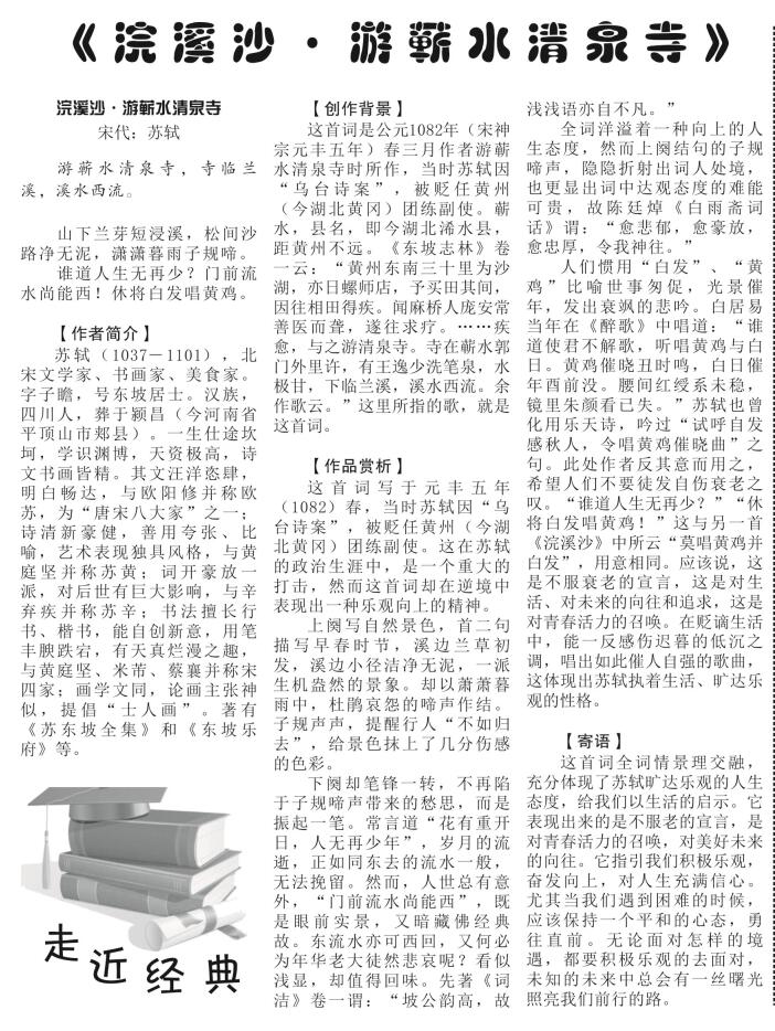 【2018年第 4 期】《浣溪沙•游蕲水清泉寺》