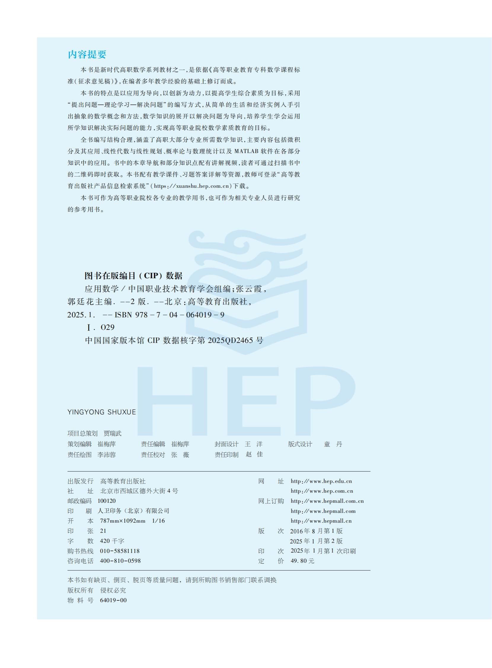 材料展示《应用数学》(第二版)