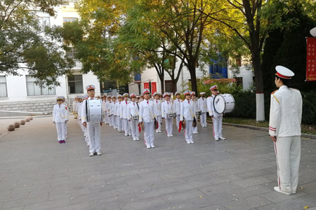 七点整,军乐团奏乐,雄壮的《中国人民解放军军歌》响彻整个校园,国旗护卫队迈着矫健的步伐,护送着鲜艳的五星红旗走向国旗台。伴随着国歌激昂的旋律,鲜艳的五星红旗冉冉升起,迎风飘扬。全体学生庄严肃立,大家深怀着对国旗崇高的敬意和对祖国无限的热爱行注目礼。