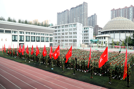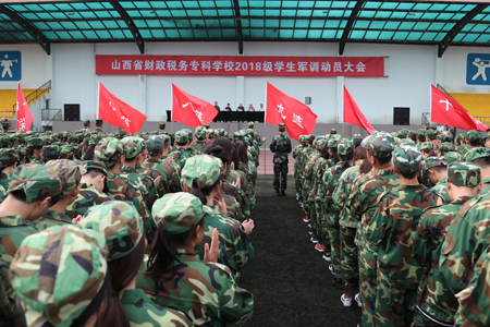 伴随着雄壮的《中国人民解放军军歌》,动员大会正式开始。承训单位武警部队领导、教官代表分别作了讲话,表示武警部队官兵将认真履行职责,以饱满的精神状态和良好军人形象精心组训、科学施训,努力让军训开展得严肃活泼、成果丰硕,让同学们掌握好基本军事技能,增强国防观念和国家安全意识,高标准完成好作训任务。学生代表会计学院2018级会计信息管理二班张艺娜同学发言,表示全体新生将以一名军人的标准严格要求自己,流汗流血不流泪,掉皮掉肉不掉队,听从指挥,服从命令,顾全大局,刻苦训练,以饱满的热情、昂扬的斗志、顽强的毅力圆满完成军训各项任务,向领导老师交一份满意的答卷。