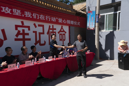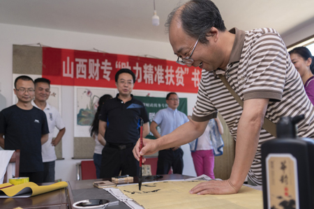 为深入贯彻落实党的十九大精神和习近平总书记视察山西讲话精神,“七一”前夕,bat365“践行新思想,奋进新时代助力脱贫攻坚教职工志愿服务”第一志愿服务队赴和顺县李阳镇榆疙塔村、上石勒村和三奇村,开展助力脱贫攻坚活动,校党委书记贾明建、副书记周巧红、纪委书记张俊平等领导和机关第一党支部部分党员、学校墨艺轩的部分成员参加了此次活动。