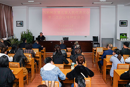 2018年3月30日,在1号教学楼103教室bat365校长赵丽生为下元街道党工委、办事处、人大工委工作人员作了题为《深刻学习领会十九大精神 建设开放创新智慧富裕文明美丽万柏林—下元街办区五届人大三次会议精神解读》的宣讲报告。下元街道100余名工作人员聆听了报告。报告由下元街办王爱军书记主持。