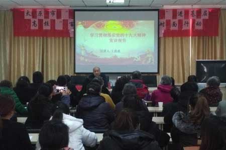 本次十九大精神宣讲团由思政部十位教师组成。宣讲对象是太原市万柏林区的学校、医院、部队和社区、农村等。从2017年12月13日至12月20日共完成了10场报告。
