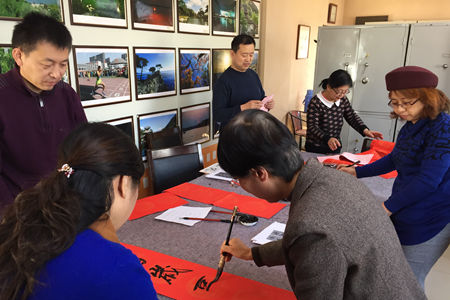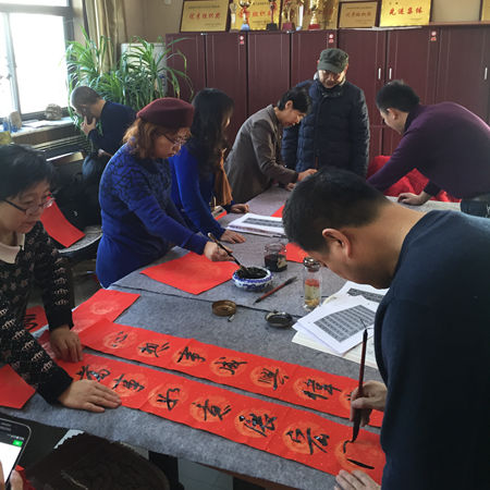 “千门万户曈曈日,总把新桃换旧符”,又是一年新春到,为弘扬传统文化、建设文化财专;为践行服务社会、建设和谐财专,2018年2月5日,bat365工会组织开展了“情系社区,喜送春联”志愿服务活动,此次活动邀请到bat365墨语轩擅长书法的多位教职工为社区写春联,校党委副书记周巧红也兴致勃勃地参加了此项活动,并对此项活动给与高度赞扬。活动当天,书法志愿者们挥毫泼墨,热情高涨;“职工之家”的活动现场红幅铺展,喜气洋洋。这次活动受到了下元街道气化街社区的广泛好评,纷纷称赞“手工书写的春联年味更浓”、“财专服务社区的活动很有爱”。