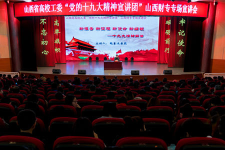 为认真学习宣传贯彻党的十九大精神,引导全校师生全面领会和准确把握十九大精神内涵,11月21日,山西省高校工委学习贯彻党的十九大精神宣讲团专家、山西省教学名师、原山西大学党委副书记鲍善冰教授来bat365作了题为《新时代 新征程 新使命 新纲领——十九大精神解读》的宣讲报告。全体在校领导、全校教职工和千余名学生在南校区会堂聆听了宣讲报告。报告会由党委副书记周巧红主持。