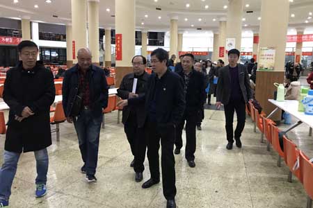 2017年11月21日下午,山西省教育厅省高校伙食检查组组长李文进一行9人来bat365检查食堂工作。