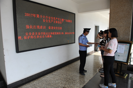 根据学校《2017年安全生产月活动方案》的安排,16日上午保卫处邀请太原市和平南路派出所民警来bat365开展安全咨询日宣传活动,活动围绕今年安全生产月 “全面落实企业安全生产主体责任”的主题,通过播放消防安全短片、设立宣传展板、发放宣传资料、现场回答学生疑问等方式,进一步提高了全校师生的安全防范意识。