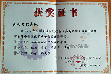 商学院学生在2017年全国职业院校互联网+国际贸易综合技能竞赛中喜获三等奖