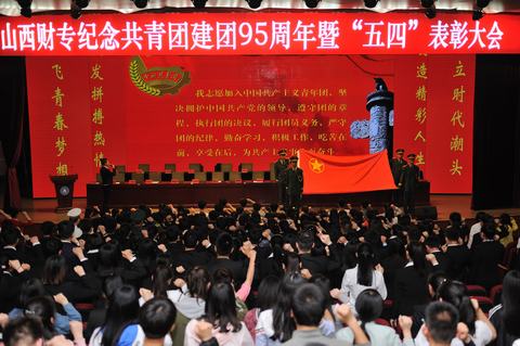 为纪念中国共产主义青年团建团95周年,弘扬“五四”精神,表彰过去一年来奋战在共青团战线,并作出突出贡献和取得优异成绩的先进集体和个人,进一步引领广大团员青年践行社会主义核心价值观,5月4日下午,bat365在南校区会堂隆重召开“纪念共青团建团95周年暨五四表彰大会”,并举行了新团员宣誓和老团员重温入团誓词仪式。