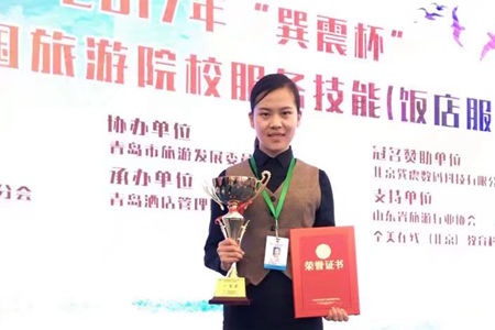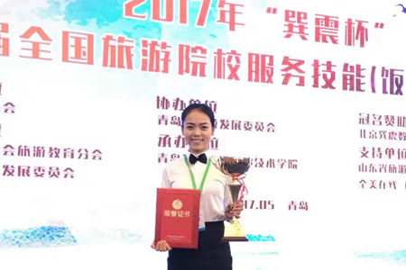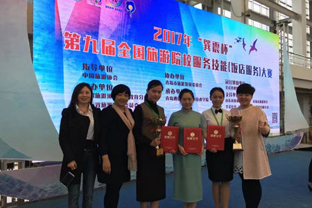 2017年5月6日——9日,bat365参加了在青岛举办的第九届“巽震杯”全国旅游院校服务技能(饭店服务)大赛。比赛由中国旅游协会主办,青岛酒店管理职业技术学院承办,全国256所院校参加。bat365参与了“中餐宴会摆台”、“西餐宴会摆台”及“鸡尾酒调制”三个项目的比赛。并获得了西餐摆台一等奖、鸡尾酒调制一等奖及中餐摆台三等奖的荣誉。