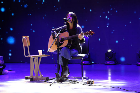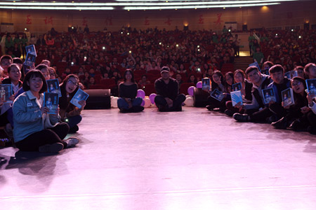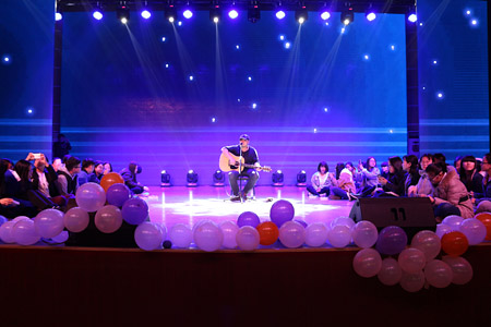大冰,本名焉冰,是民谣歌手、作家、山东卫视主持人。近年来,出版了多部畅销著作,如《好吗好的》、《乖.摸摸头》等。为反馈支持他和支持“大冰的小屋”的广大读者,举办了百城百校音乐畅聊会活动,辗转全国数百城市数百高校,受到了大学生的广泛欢迎。此次bat365音乐会活动,“大冰的小屋”的成员小不点和二宝现场为大家演唱了原创民谣并和广大学生进行了互动,畅聊梦想、青春、奋斗。
