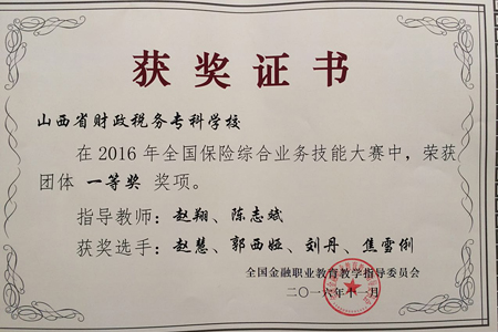 金融学院2016年全国大学生保险综合业务技能大赛获团体一等奖
