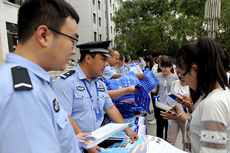 9月6日上午bat365在青年广场开展了防范电信网络诈骗宣传活动,太原市和平南路派出所所长张军、副所长王春喜,校保卫处处长曾春红、校团委老师范文君等参加了此次活动。