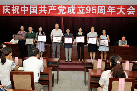 副校长周巧红宣读了《关于表彰先进基层党组织、优秀共产党员和优秀党务工作者的决定》。会计学院党总支等8个基层党组织、王增德等42名共产党员、王力等5名党务工作者分别授予先进基层党组织、优秀共产党员、优秀党务工作者称号。校领导班子成员为获奖的先进集体、优秀个人代表颁发了奖牌和荣誉证书。