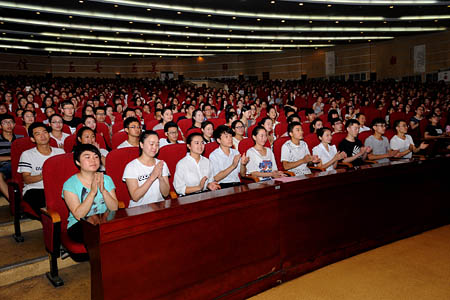 教师代表、思想政治理论教学研究部郭晓旭老师,毕业生代表、信息学院卫峰茜同学,在校生代表、会计学院段浩斌同学分别发言,会场内多次响起雷鸣般的掌声。这掌声代表了学子们对未来的憧憬,更代表了对母校依依惜别的深情和对母校美好明天的祝福。