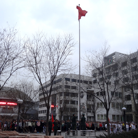 誓言铿锵,表达了广大同学深厚的爱国热情,展现了同学们饱满、昂扬的精神。新学期、新起点、新目标,鲜艳的五星红旗将指引着全校师生投入到新学期的新征程中。