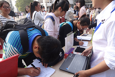 纳新前期,校学生会、学生社团联合会以及各学生社团通过走班宣传、串访新生宿舍和微信平台等形式进行了充分的宣传。纳新现场色彩斑斓的展板,缤纷的条幅、海报,汇成了校园内一道亮丽的风景线。响亮的音乐,激情的舞蹈,充斥着整个青年广场,每一个节目,都体现着bat365底蕴深厚的校园文化。整个纳新过程有条不紊的进行,2015级新生积极踊跃报名参与,场面热烈。
