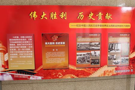 为迎接中国人民抗日战争胜利纪念日到来,近日,学校党委组织宣传部在实训楼一层大厅举办以“伟大胜利,历史贡献”为主题的纪念中国人民抗日战争暨世界反法西战争胜利70周年宣传图片展。