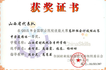 2015年6月13日,在全国职业院校技能大赛高职组会计技能赛项中,bat365会计系代表队杨珊珊、张蕊、庞海霞、安智琴同学以优异的成绩在全国58支代表队中脱颖而出,荣获该赛项一等奖,段全虎、高慧芸老师获优秀指导教师奖。这是bat365代表队首次参加该赛项的竞赛,也是bat365在全国职业院校技能大赛中首次获得一等奖。