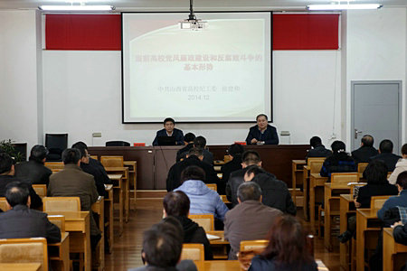 徐建和书记在专题辅导报告中运用大量资料和案例,分别从党的十八大以来反腐倡廉的新部署、新要求、新举措,我省党风廉政建设和反腐败斗争的形势,我省高校系统党风廉政建设和反腐败斗争的形势,增强反腐倡廉工作的责任感、使命感等四方面深入阐释了新时期反腐倡廉工作的重要性、紧迫性,详细解读了党的十八大以来我省和我省高校系统党风廉政和反腐败斗争的形势、特点和存在的问题、处理情况以及党员领导干部廉洁自律的具体要求等。徐书记的报告内容丰富、旁征博引,案例警示性强,为党员领导干部上了一堂触动心灵的反腐倡廉教育课。