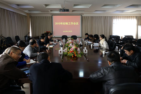 1月6日,bat365在办公楼第五会议室召开了2015年纪检工作会议。校党委书记贾明建,校党委委员李富堂,校纪委委员、纪委办公室(监察室)全体人员和各党总支(直属党支部)纪检委员参加了会议。会议由纪委办公室(监察室)主任陶莹主持。