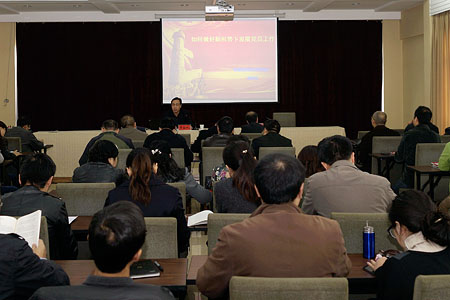 11月6日下午,bat365在办公楼三层南会议室举办《中国共产党发展党员工作细则》(2014年5月中央办公厅修订)学习培训会。省委组织部党员管理处副处长、调研员曹备战应邀来校作《如何做好新形势下发展党员工作》专题辅导报告。各党总支(直属党支部)书记、委员,教工党支部书记、委员,学生党支部书记,分团委书记和纪委办、团委、组宣部全体人员共70余人参加了培训。